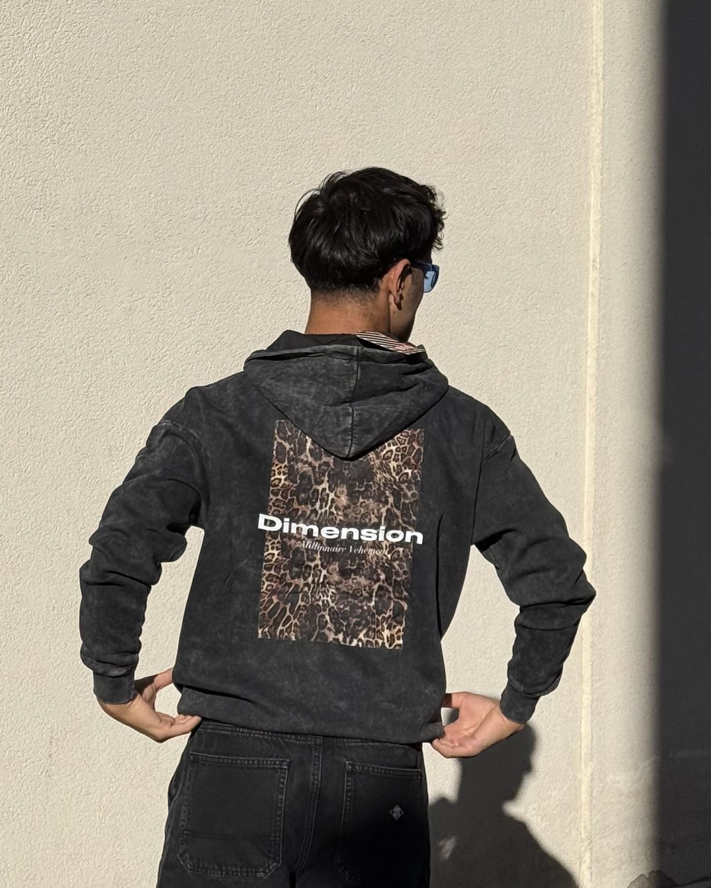 Dimension Baskılı Oversize Unisex Yıkamalı Hoodie