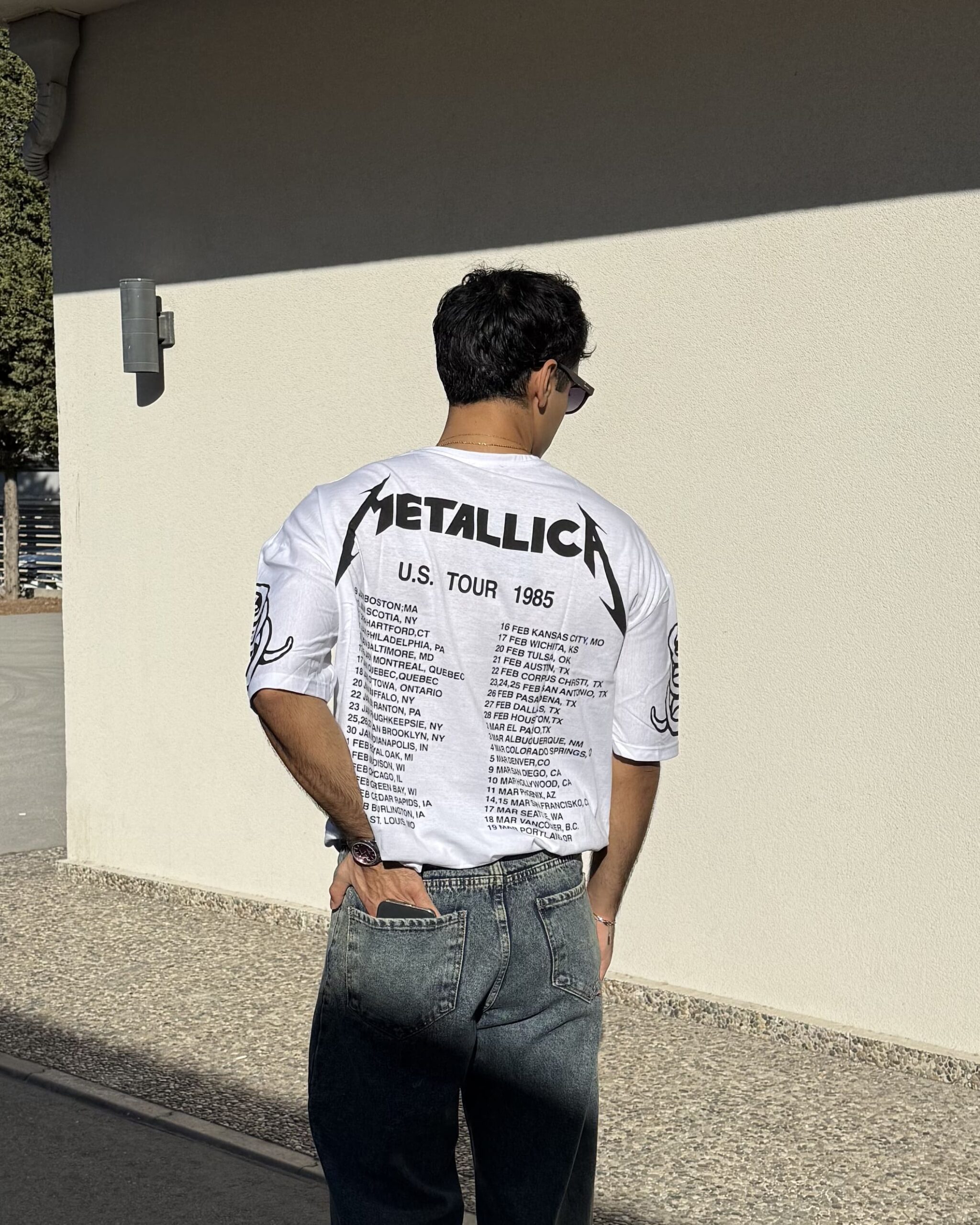 Ana Sayfa Erkek Üst Giyim T-Shirt Metallica Tour 1985 Baskılı Unisex Oversize Siyah Tshirt